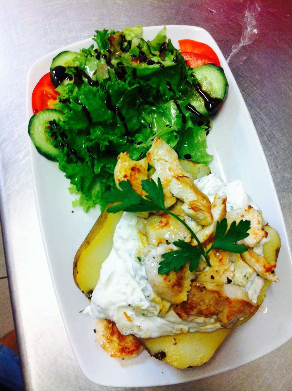Ofenkartoffel mit Kräuterquark an Salatbouquet