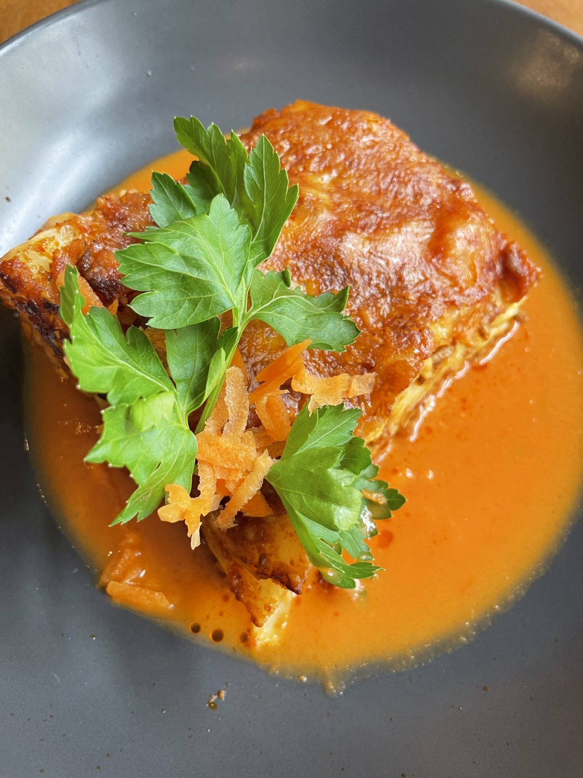 Hausgemachte Lasagne mit Hackfleisch und Käse überbacken